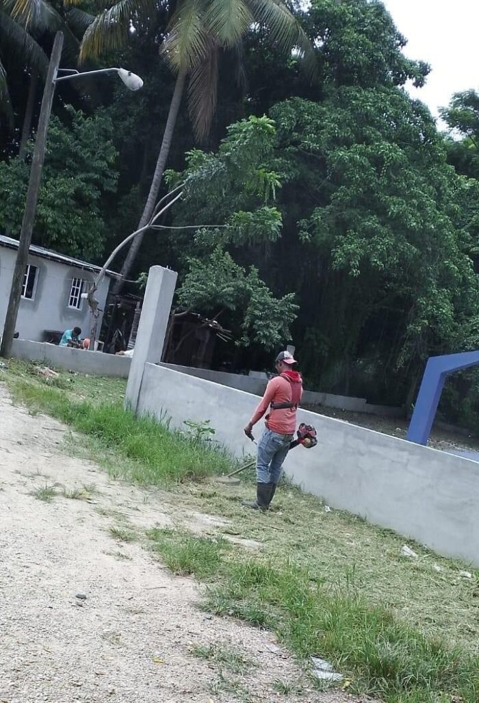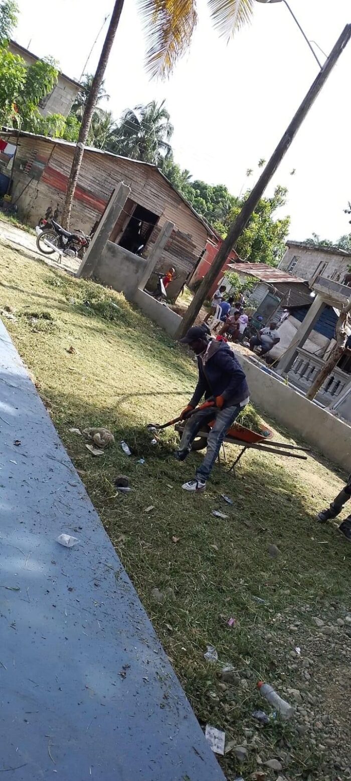 La Alcaldesa del Distrito Municipal Hato Damas, Daniela Alcántara Castillo, supervisó los trabajos de limpieza y acondicionamiento en la cancha del sector «Boruga». Este proyecto busca mejorar los espacios de recreación y fomentar el desarrollo integral de los jóvenes de la comunidad.